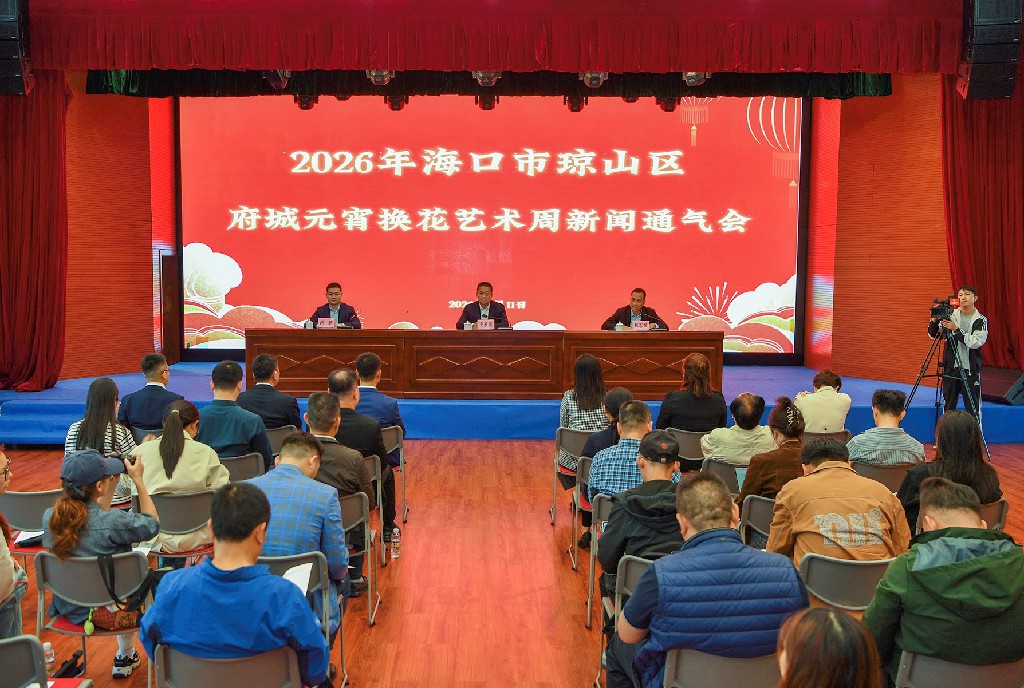 2月11日下午,海口市瓊山區召開2026年府城元宵換花藝術周新聞通氣會。會議通報了2026年瓊山區府城元宵換花藝術周促消費工作及活動安排。