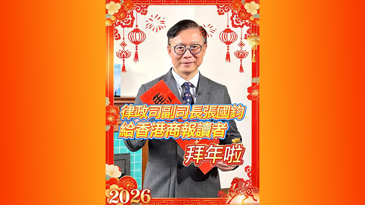 2月16日除夕,律政司副司長張國鈞向香港商報讀者拜年,他祝大家新一年:「龍馬精神,好運奔騰。」