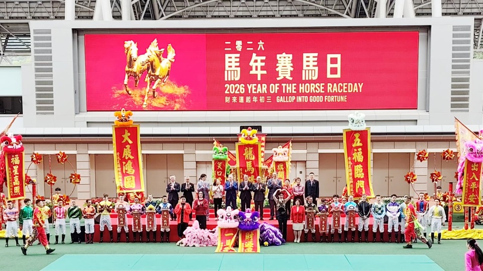 今天(19日)是大年初三赤口,沙田馬場舉行馬年賽馬日,是日合共有11場賽事上演,頭場下午12時半開跑,焦點賽事為第6場、二班途程1600米馬年盃,一共有十匹賽駒角逐。財政司司長陳茂波、文化體育及旅遊局局長羅淑佩、賽馬會主席廖長江、賽馬會行政總裁應家柏等人擔任主禮嘉賓。賽馬會表示,今日吸引超過9.8萬人次入場,為新冠肺炎疫情後新高,當中內地及海外旅客人數更刷新歷來賽馬日紀錄,超過2萬人,全日投注額錄得逾18.4億港元。