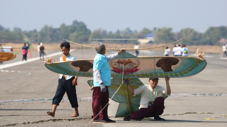 頂圖圖說:2月20日,在柬埔寨暹粒省舉辦的風箏節活動上,愛好者準備放飛風箏。(新華社)