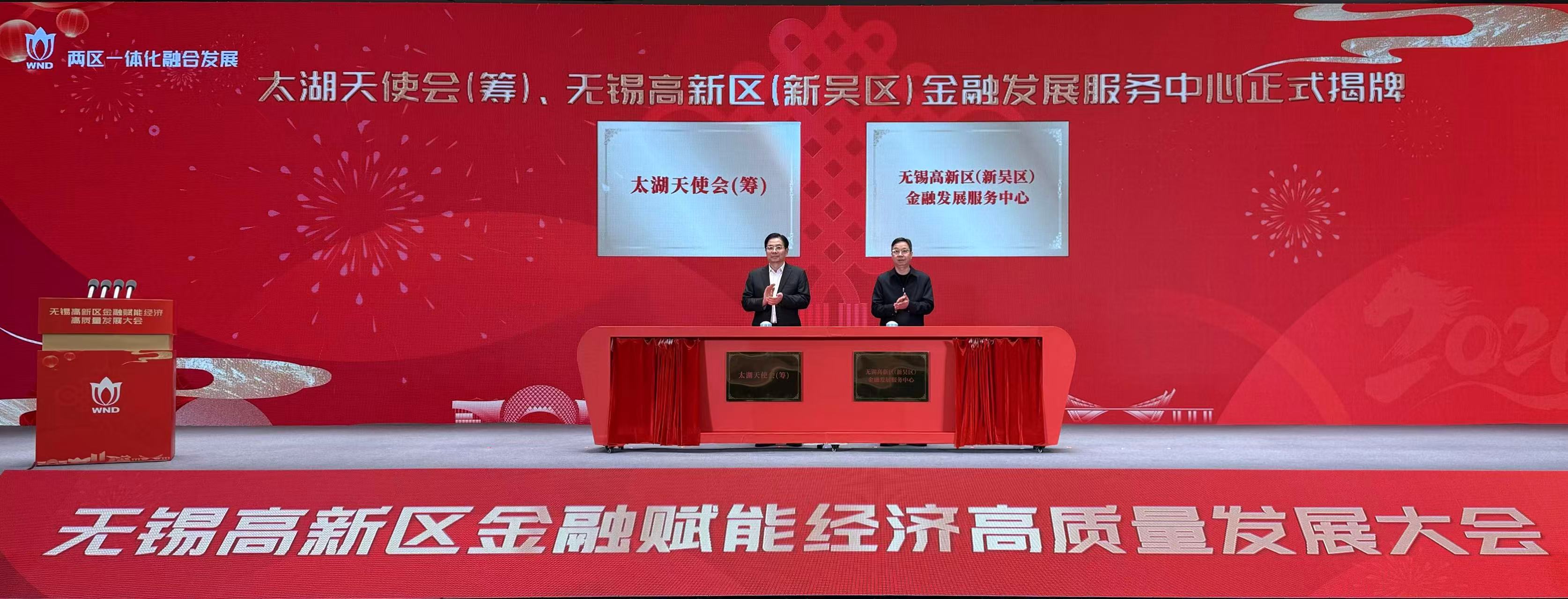 頂圖:2月25日,無錫高新區舉辦金融賦能經濟高質量發展大會,太湖天使會(籌)、無錫高新區(新吳區)金融發展服務中心揭牌。(宋璟 攝)