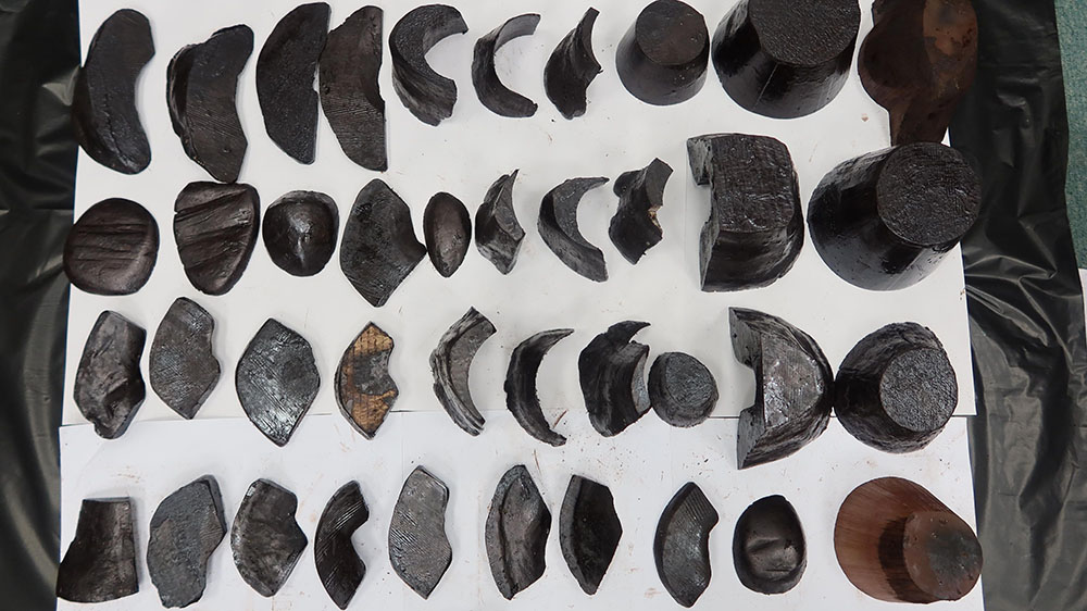 頂圖:海關人員於該名旅客行李檢獲的犀牛角切片。