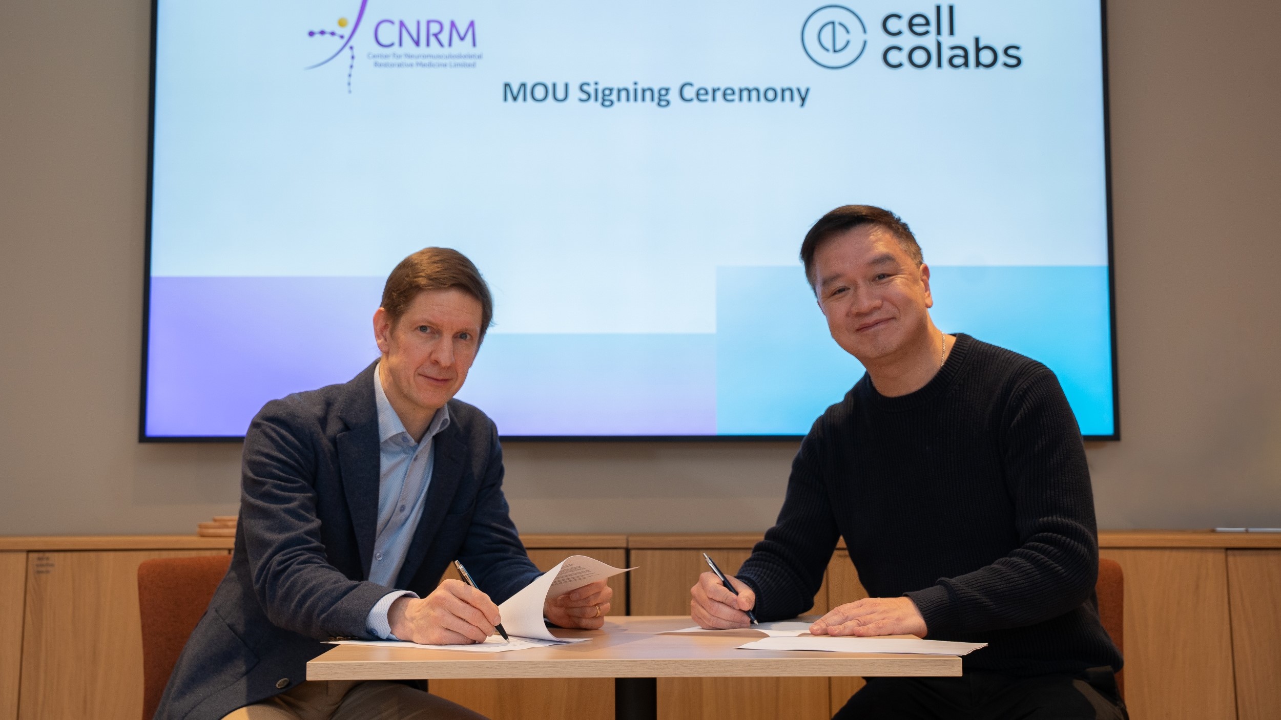 香港中文大學設立的InnoHK神經肌肉骨骼再生醫學中心(簡稱CNRM)與瑞典企業Cellcolabs AB簽署合作備忘錄,建立戰略性國際合作關係,支持CNRM即將開展的同種異體間充質基質細胞(MSC)治療膝骨關節炎I期及II期臨床研究項目。