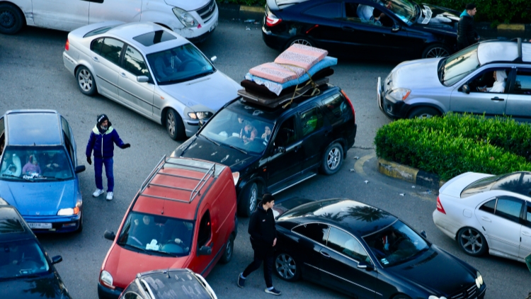頂圖圖說: 3月2日,人們從黎巴嫩南部的村莊撤離。以色列國防軍2日發表聲明稱,正在黎全境打擊黎巴嫩真主黨目標。