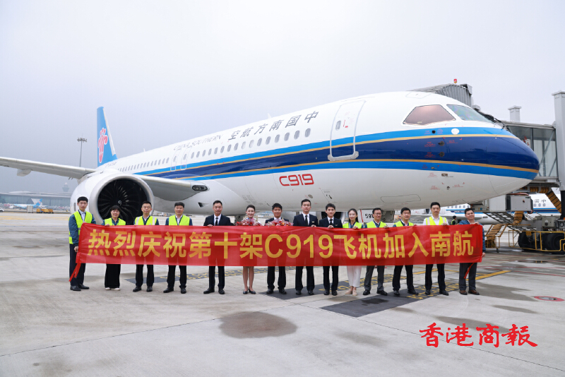 3月2日11:45分,一架飛機機號為B-659W的國產大飛機C919從上海浦東國際機場飛抵廣州白雲國際機場,標誌着南航第十架C919國產大飛機正式入列。