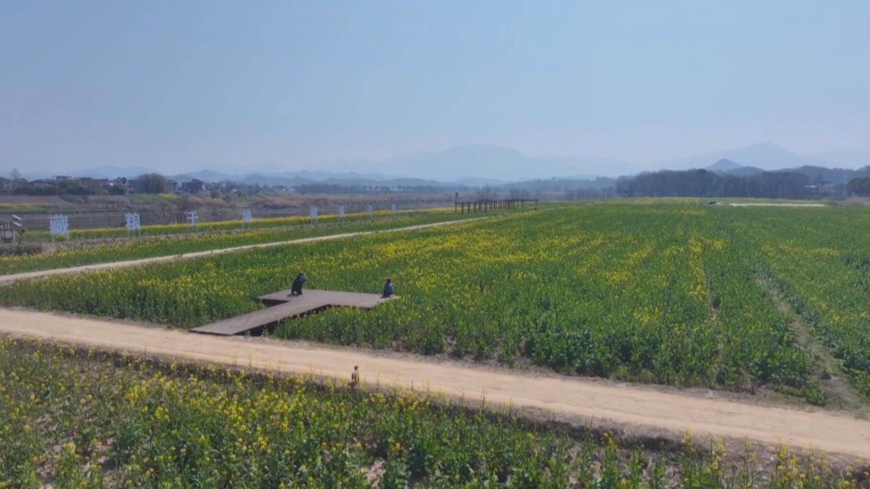 漢沙村黨總支書記、村委會主任江衛民介紹說:「村里油菜種植面積約300畝,預計三到五天完全盛開。2023年村里完成土地收回並打造高標準農田,不僅增加了村集體收入、解決部分村民就業,還推動了文旅發展,吸引不少學生和單位前來研學,真正實現了農文旅相結合。」