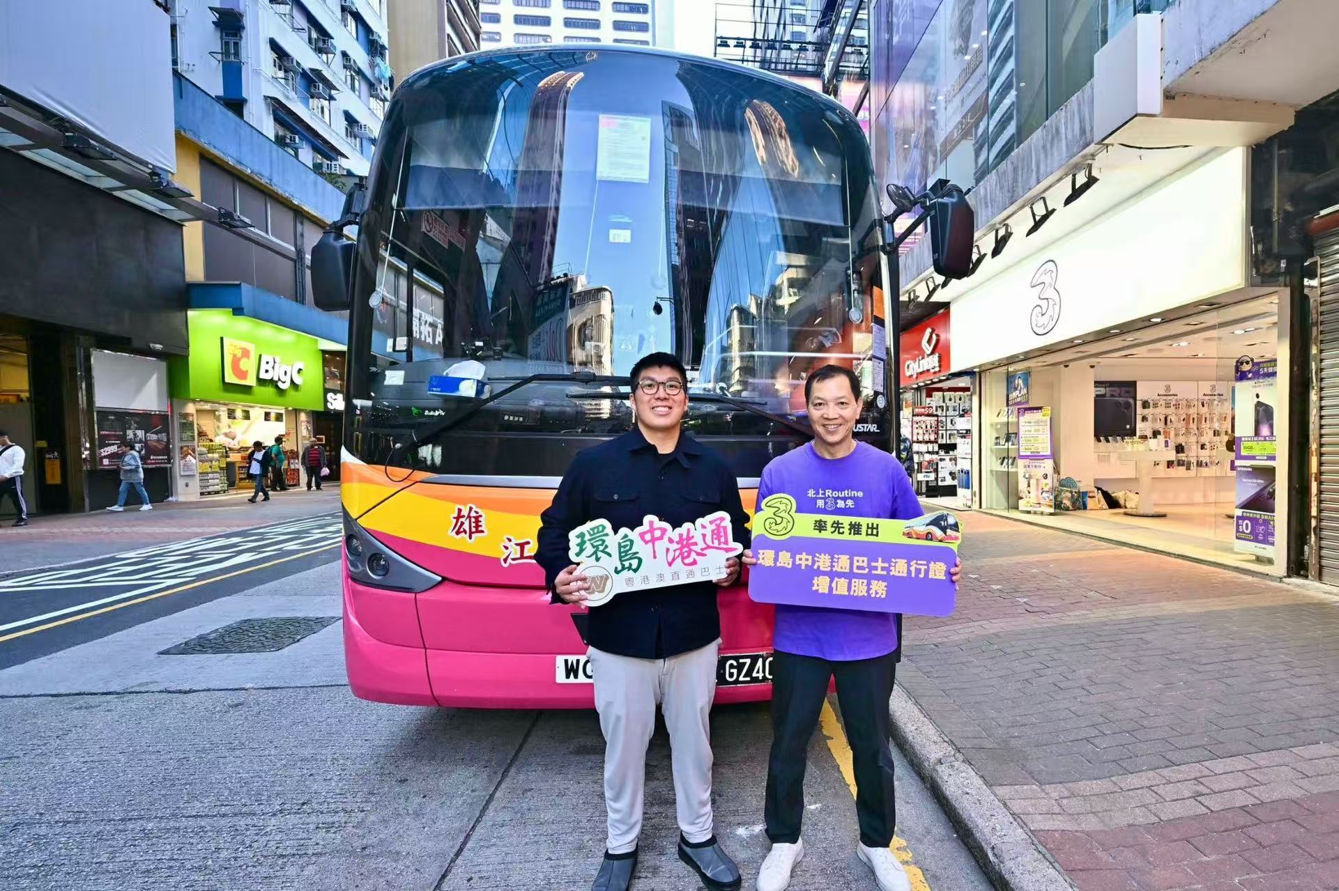 3 香港及 3SUPREME 致力推出在數據及通話分鐘以外的生活化增值服務,讓客戶感受到「好在有 3」的品牌理念。最新夥拍環島中港通,推出全港首個「環島中港通巴士通行證」增值服務,客戶只需低至38港元的月費,即可每月享一程跨境直通巴士車票。(記者 林德芬)