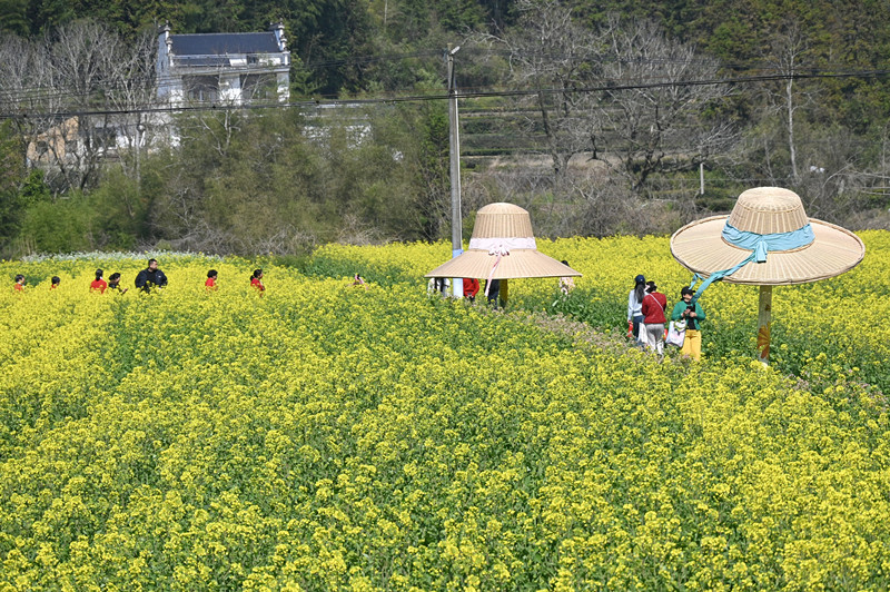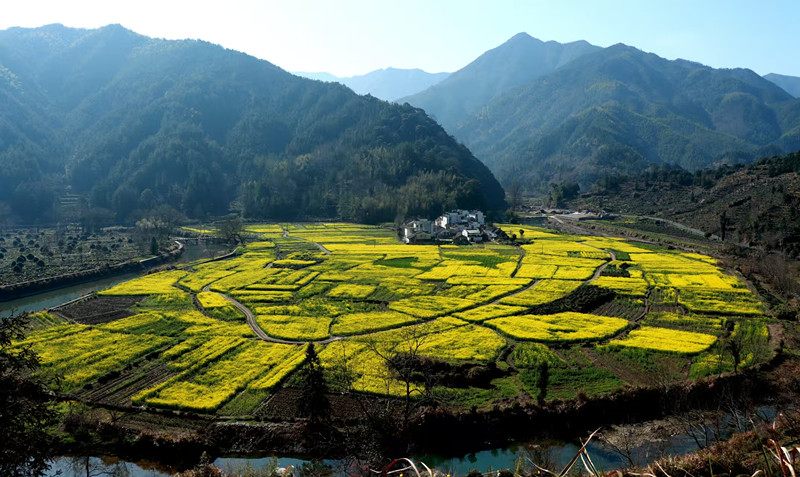 春光明媚,眼下,安徽歙縣霞坑鎮石潭村1500餘畝油菜花如約盛放。金燦燦的花海鋪展山間,與白牆黛瓦的徽派民居、連綿起伏的青山交相輝映,繪出一幅生機盎然的春日畫卷,吸引了大批遊客紛至遝來,盡享鄉村好春光。