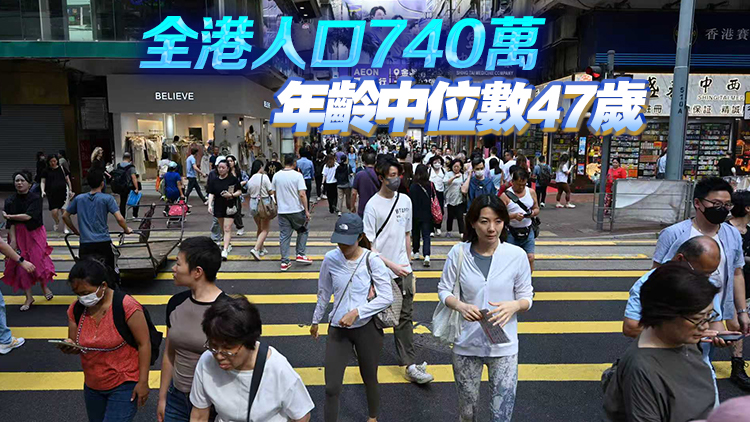 數據顯示,2025年全港陸上非住院人口為7400500人,年齡中位數47歲。整體性別比率為每千名女性對828名男性;如不計外籍家庭傭工,則為每千名女性對904名男性。