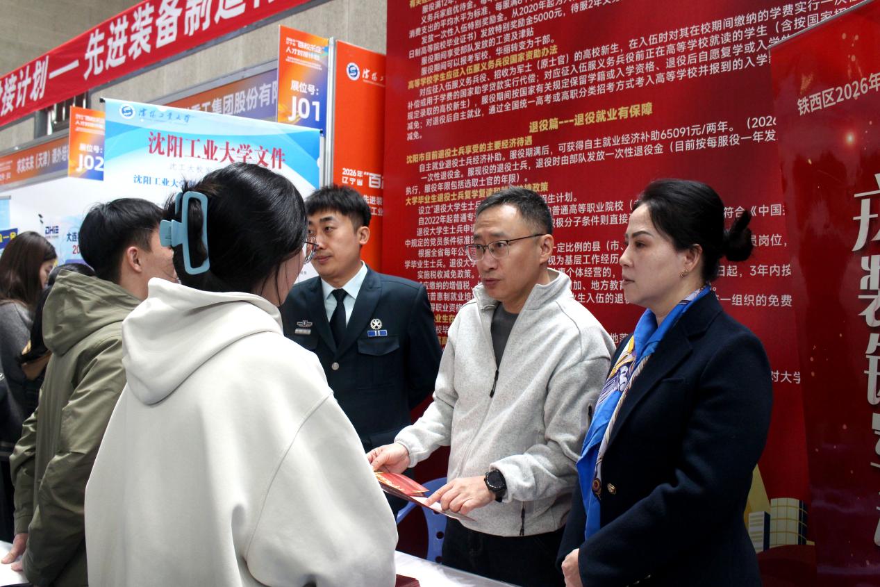 近日,瀋陽鐵西區退役軍人事務局聯合區人民武裝部,依託瀋陽工業大學2026屆畢業生春季校園雙選會平台,設立徵兵諮詢與退役政策一站式服務專區,為應屆畢業生提供徵兵入伍、退役安置、就業創業等全鏈條政策宣傳解讀服務,切實將政策紅利精準送達青年群體手中。
