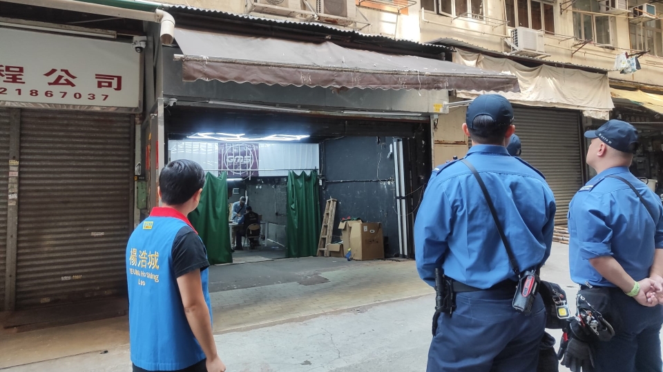 今日履新的運輸署署長謝詠誼(右四),早上到荃灣大河道一帶的的士站視察。