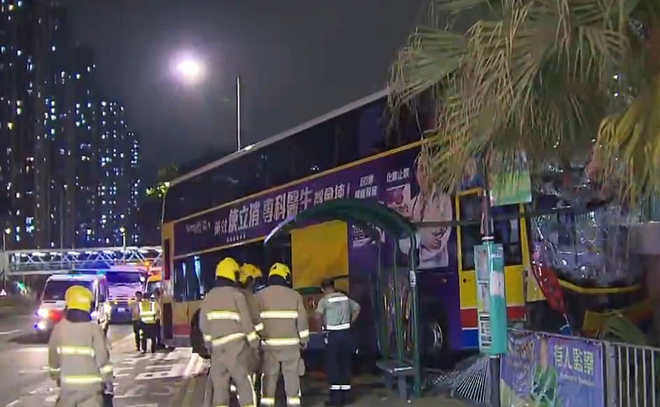 昨晚(11日)近11時,一名42歲巴士司機駕駛巴士,沿松仁路往東涌道行駛時據報突然暈倒,巴士懷疑失控衝上行人路,再撞向巴士站。