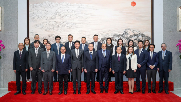 文化體育及旅遊局局長羅淑佩主禮授旗儀式,在中聯辦宣傳文體部副部長林枬陪同下,將香港特別行政區區旗授予港協暨奧委會會長霍震霆、義務秘書長楊祖賜、副會長兼三亞2026亞沙運中國香港代表團團長楊頴新,以及其他代表團成員,並祝願代表團在比賽中盡顯所長。