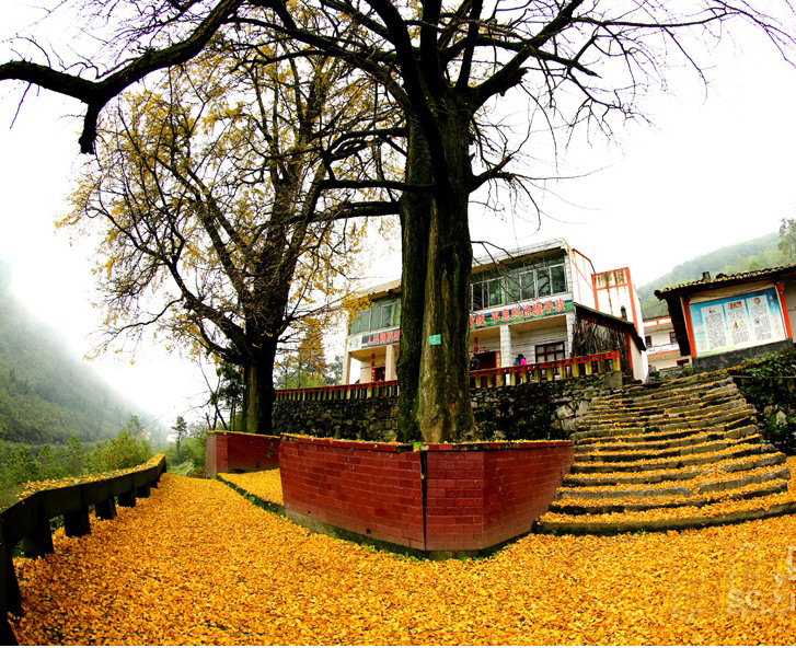 暮秋時節,四川省廣安市華鎣山區紅岩鄉茶園村兩棵相依相伴1500餘年的雌雄銀杏樹,把秋天裝進記憶,或在枝頭飄舞最後一片燦爛,或在樹下灑滿一遍金黃,在大山深處呈現出“秋染黃葉遍地金”的景致,惹得不少市民慕名前往觀賞。