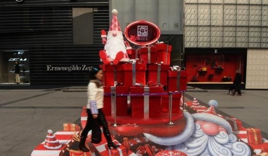 3D圣诞老人亮相重庆街头 商家预热圣诞购物季