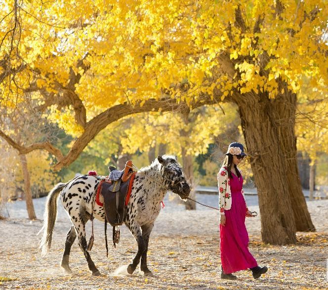 遊客在內蒙古阿拉善盟額濟納旗胡楊林景區遊玩。金秋時節,內蒙古自治區阿拉善盟額濟納旗胡楊林自然保護區內的胡楊林迎來最佳觀賞期,吸引海內外遊客紛至遝來。