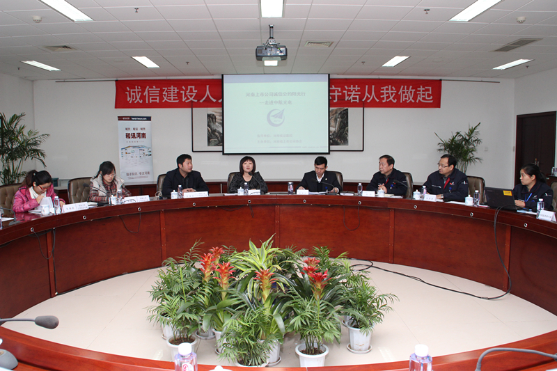 【香港商報訊】記者羅夢亞報道:12月9日上午,由河南證監局指導,河南上市公司協會主辦的河南上市公司誠信公約陽光行走進中航光電。近30名機構投資者、個人投資者、券商分析師、新聞媒體等代表,和上市公司協會代表參加本次活動,中航光電科技股份有限公司董事長郭澤義,財務總監劉陽等企業高管出席本次座談會。