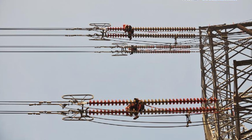 12月10日,工作人员对国家电网天津500千伏滨丽一线进行PRTV施涂工作。