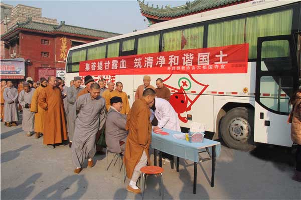 【香港商報訊】記者羅夢亞報道:12月14日上午,由開封市佛教協會、開封大相國寺組織的“集菩提甘露血液 築清淨和諧國土”無償獻血活動,在大相國寺山門舉行。參加獻血活動的有大相國寺全體僧眾、開封古觀音寺和普濟寺的部分僧眾,以及佛教居士、遊客,共計近百餘人。