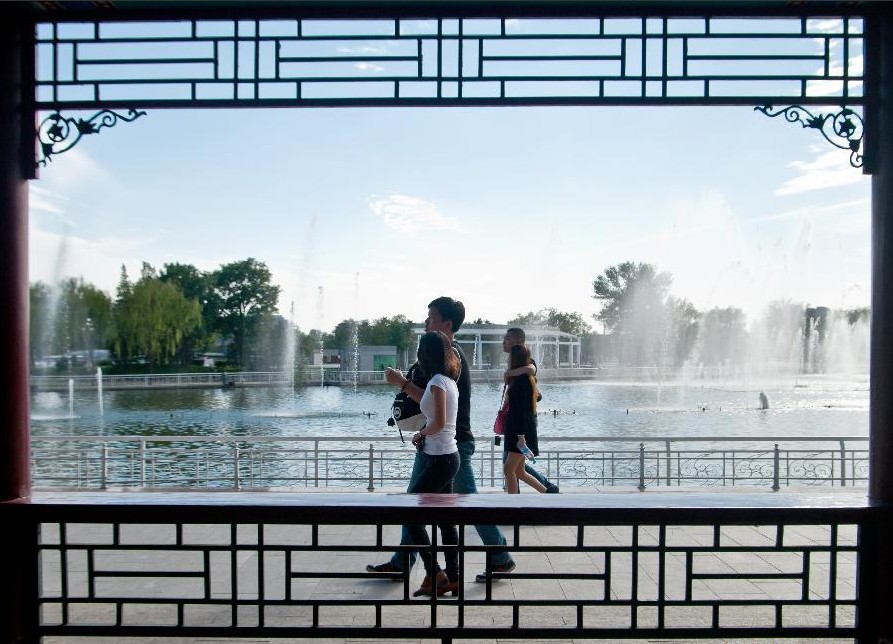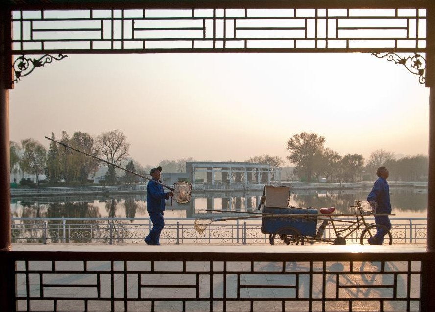 在天津市水上公园里有一条长约740米的中式长廊,人在廊中走,公园里的风景便映入一个个由长廊构成的“相框”。从2013年4月开始,记者将镜头对准其中一格“相框”,记录下这里四季的更替和人们的生活。