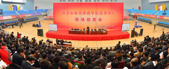 2014年初,新余在江西省率先推行公车改革,新余将500余辆公车面向社会公开拍卖处理。此次为首轮拍卖会,拍卖车辆为123辆,当日参与竞拍者达到1500余人。赵春亮摄