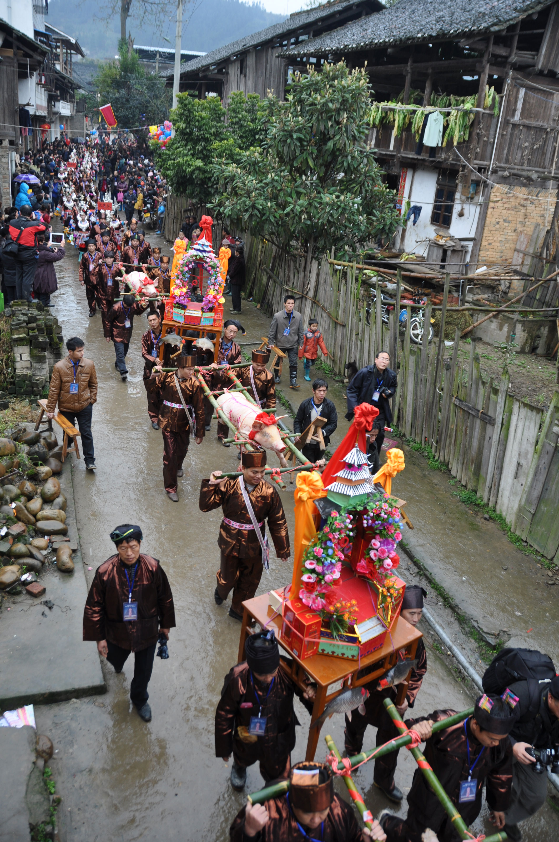 【香港商报讯】记者欧阳萍、通讯员龚普康报道:日前,广西三江侗族自治县梅林乡126届“二月二”侗族大歌节在黔桂交界的榕江河畔举办,吸来桂湘黔三省数万游客前来观赏体验。活动以炫动多姿的形式向观众展示千人放木排、侗族大歌、百家宴、侗族织布流程、抬官人、抢花炮等非遗传承项目或亟待保护的民族文化艺术瑰宝。