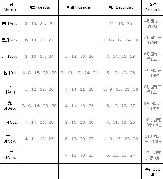去程每周2-3班固定开行 计划开行12趟回程班列