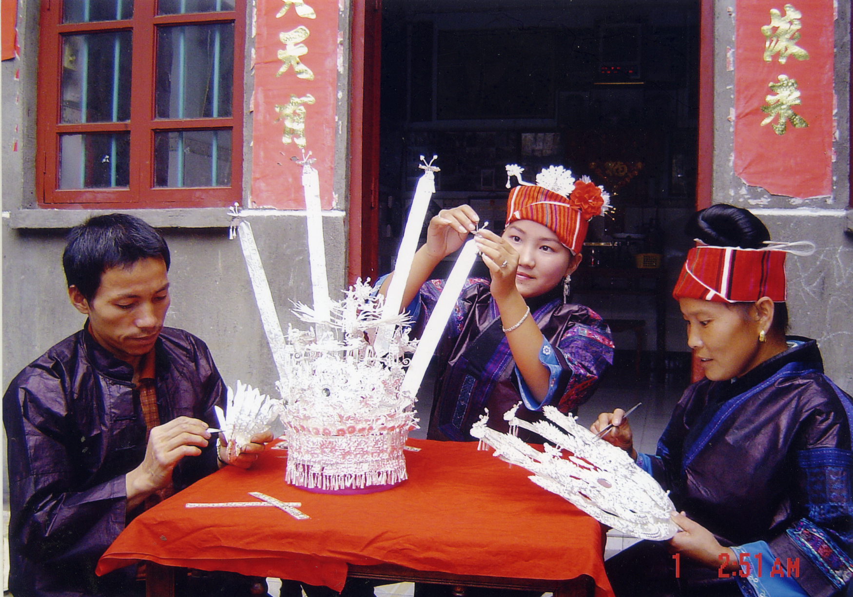 吴水根一家正在进行苗族银饰制作