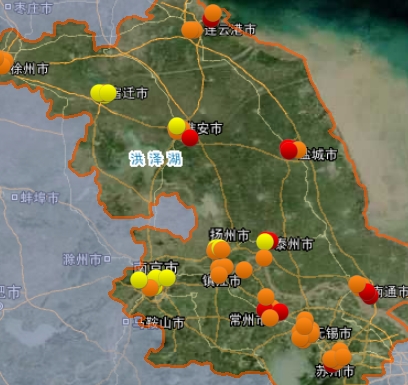 淮安、无锡、徐州、镇江、常州、连云港、苏州、南通、泰州为轻度污染