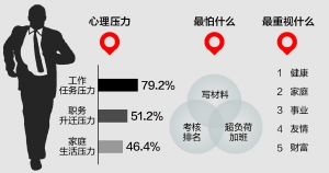 “谁说公务员工作就是喝茶看报呀,我们可是白加黑、5+2地加班,还没加班费拿。”在市级机关工作的一位科长吐槽,“公务员的压力其实还是挺大的,工作要考核,和上级领导要处好关系,此外还有升迁压力等。”