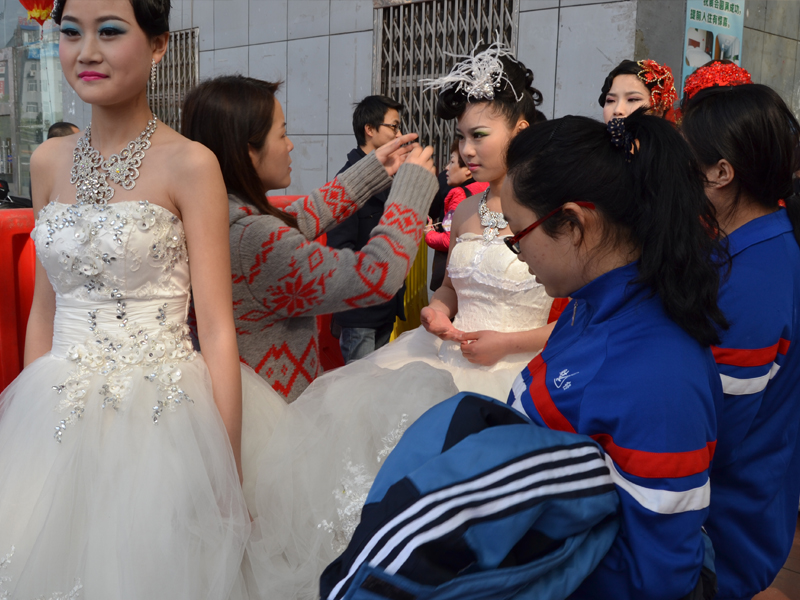 来自职业学院的美容专业学生成为博览会“指定美容师”(图张奇帅摄)