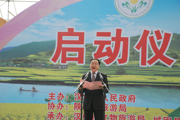 2014中国最美油菜花海汉中旅游文化活动主会场城固县县长陈心亮在启动仪式上致辞。