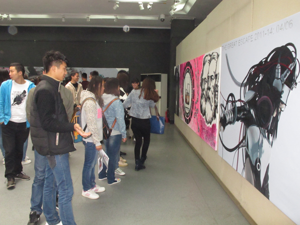 本次展览共展出凯撒先生大幅尺寸油画及综合媒材作品33 件。展出作品分为三大系列:大逃脱系列——画家截取一些富有社会学、符号学意义的图像,与一些文字、数字常常并置在一起。血腥、情色、暴力等等从画面迸发,挑衅着我们久已麻木的神经,同时也启示着我们重新看待我们生活的这个世界;抽象系列——在巨大的画幅上,画家以一组组带有极强速度感、厚重、富有张力的线条掠过画面,在疏密之间,在黑白之间,在理性与感性之间,构成一曲有极强音域的视觉交响乐,震撼着我们的心灵;十二生肖系列——作者以生物头骨为题材,将异常冷静的目光置放于画面,让观者对死亡有了更为深刻的理解。