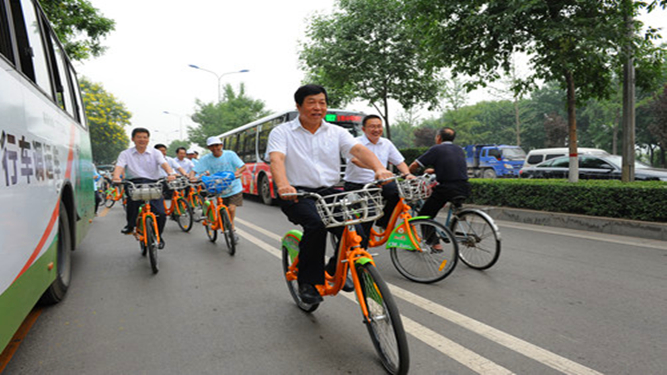 太原市人大常委会主任郭振中骑公交自行车倡导绿色出行(资料图)