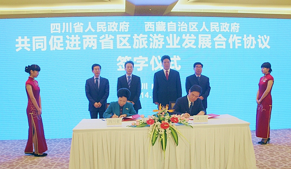 四川省与西藏自治区山水相连,情感相系,人文相近。为贯彻落实中央关于深入实施西部大开发的决定,充分发挥两省区旅游业的优势和特色,积极推进川藏两省区旅游合作,使特色旅游产业成为川藏新的经济增长点,共同促进两省区经济发展和社会长治久安。四川省与西藏自治区签订了此《合作协议》。两省区将在创新旅游合作机制、加强旅游通道对接、完善旅游公共服务设施、联手打造和共同营造大香格里拉、318川藏线等旅游精品、加强旅游市场监管和旅游人才培养等七个方面开展深度合作,建立长期稳定的战略合作关系,树立川藏国际旅游形象和品牌,共同构建无障碍旅游区。