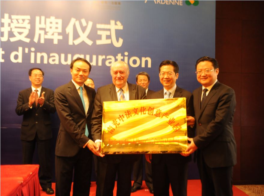 法国香槟-阿登大区主席让-保罗·巴希先生向顺庆区人民政府授“中法文化产业创意园”牌匾.