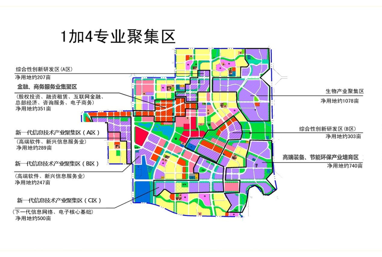 《规划》提出的破解之道是:“一核两区多园”,通过优化三类空间布局,按照创新型产业集群发展思路,以先进制造业和现代服务业融合发展为纽带,科学统筹西部园区和南部园区资源,合力建设高科技产业新城。