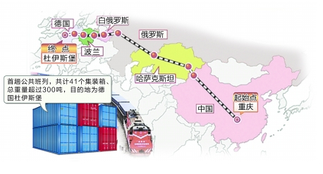 “首趟公共班列的开行,打破了以往专列的限制,重庆及周边城市的货源可以源源不断到重庆集结。”渝新欧(重庆)物流有限公司总经理周树林表示,随着渝新欧成功开行公共固定班列,重庆将真正一跃成为全国对欧出口货物的主要集散地和中转站,这不仅为“重庆造”产品、重庆周边乃至全国各大生产商提供进军欧洲市场的便利。同时,也将成为欧洲及中亚国家产品出口中国的一条“绿色通道”。