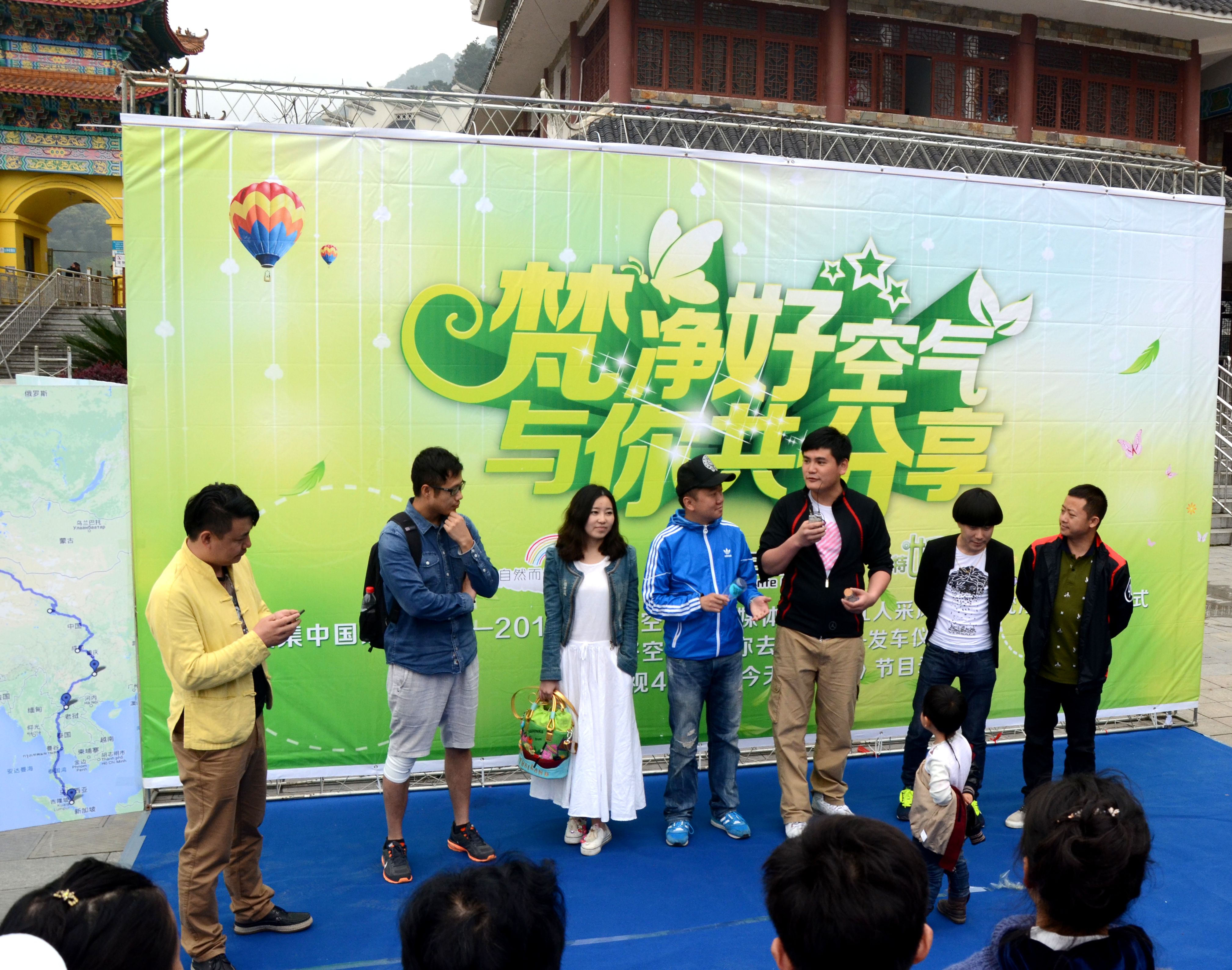 下午两点,采风团来到梵净山景区莲花广场,适逢“梵净好空气随你去欧亚”发车仪式在此举行。