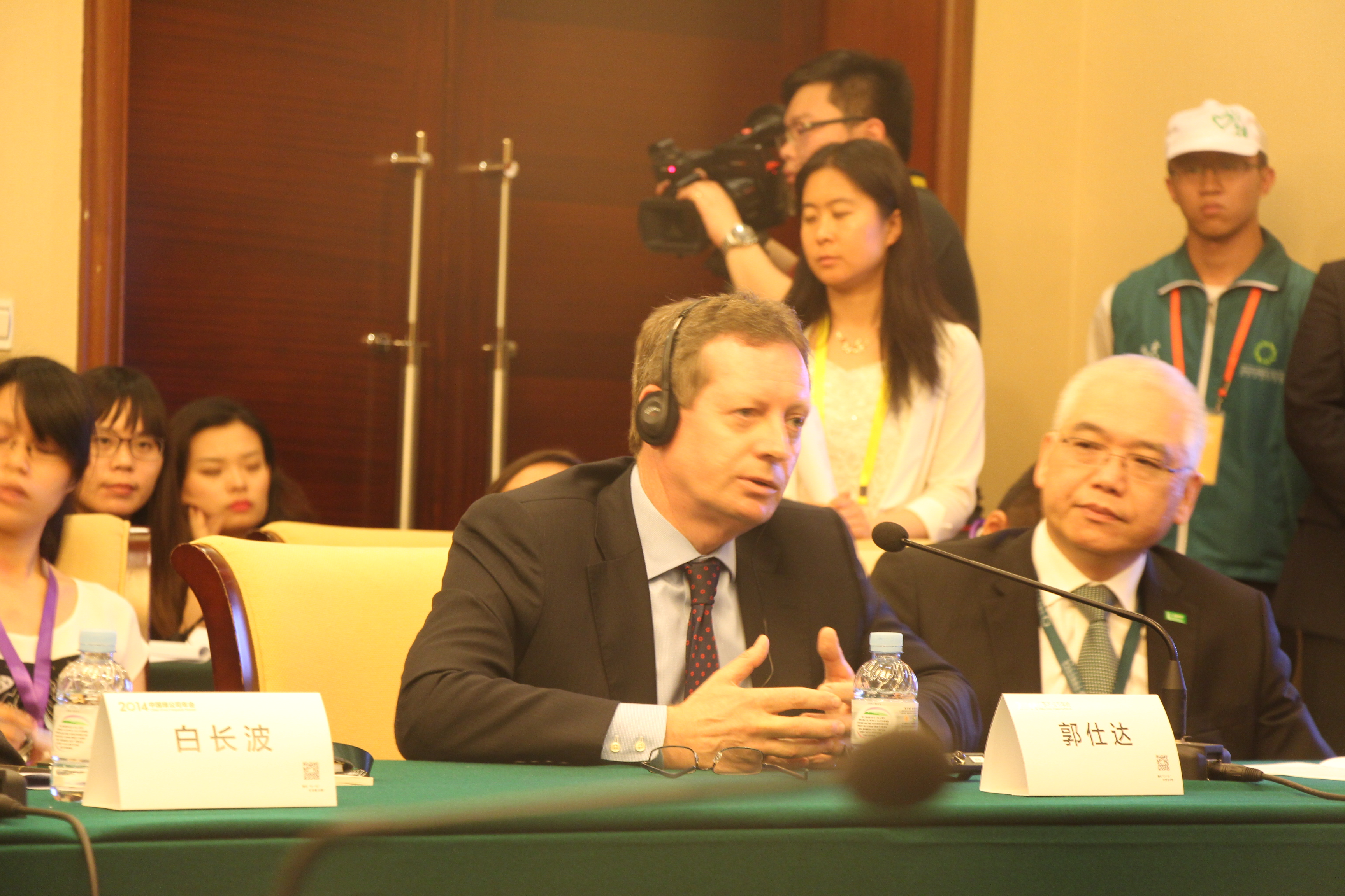 据悉,2014中国绿公司年会成为中法建交50周年官方的系列活动之一,法国外贸、旅游和海外法国人事务国务秘书福勒尔.佩勒林带领法国工商代表团参与年会。法、比、芬、澳、日、英、美、等多国驻华大使、外交官和企业家也参与年会,与中国企业家交流互动。