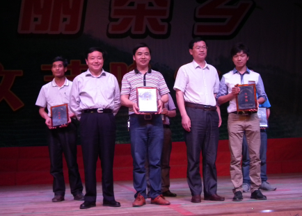 遂川县委书记张平亮(前排左一)为获奖选手颁奖。