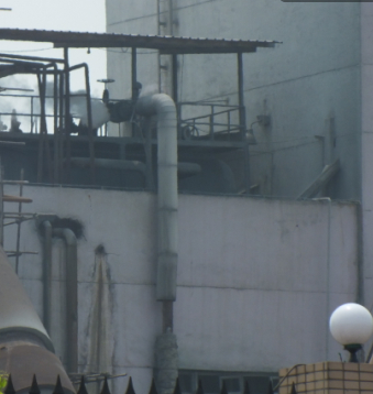 图为水口山冶炼八厂一处管道正在往外冒黑烟