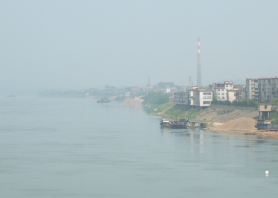 图为在常宁松柏湘江边,湖南水口山有色金属集团冶炼厂烟囱林立