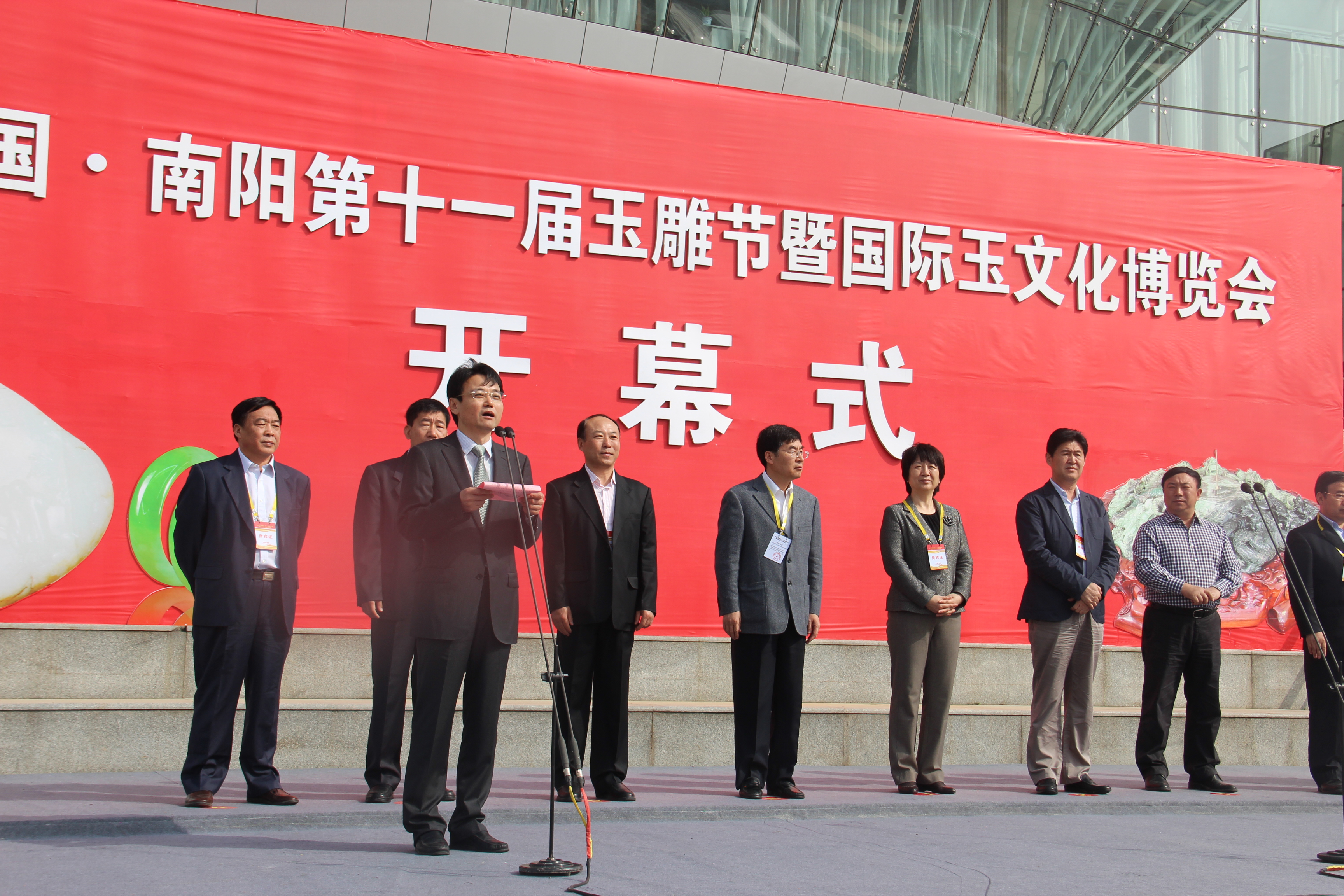 【香港商报讯】记者孟紫薇、王斐报道:28日上午,中国·南阳第十一届玉雕节暨国际玉文化博览会在南阳开幕,全国政协环资委副主任、中国珠宝玉石首饰行业协会会长徐德明,国务院发展研究中心副主任张军扩,河南省委常委、宣传部长赵素萍,南阳市委书记穆为民,南阳市市长程志明等参加开幕式。