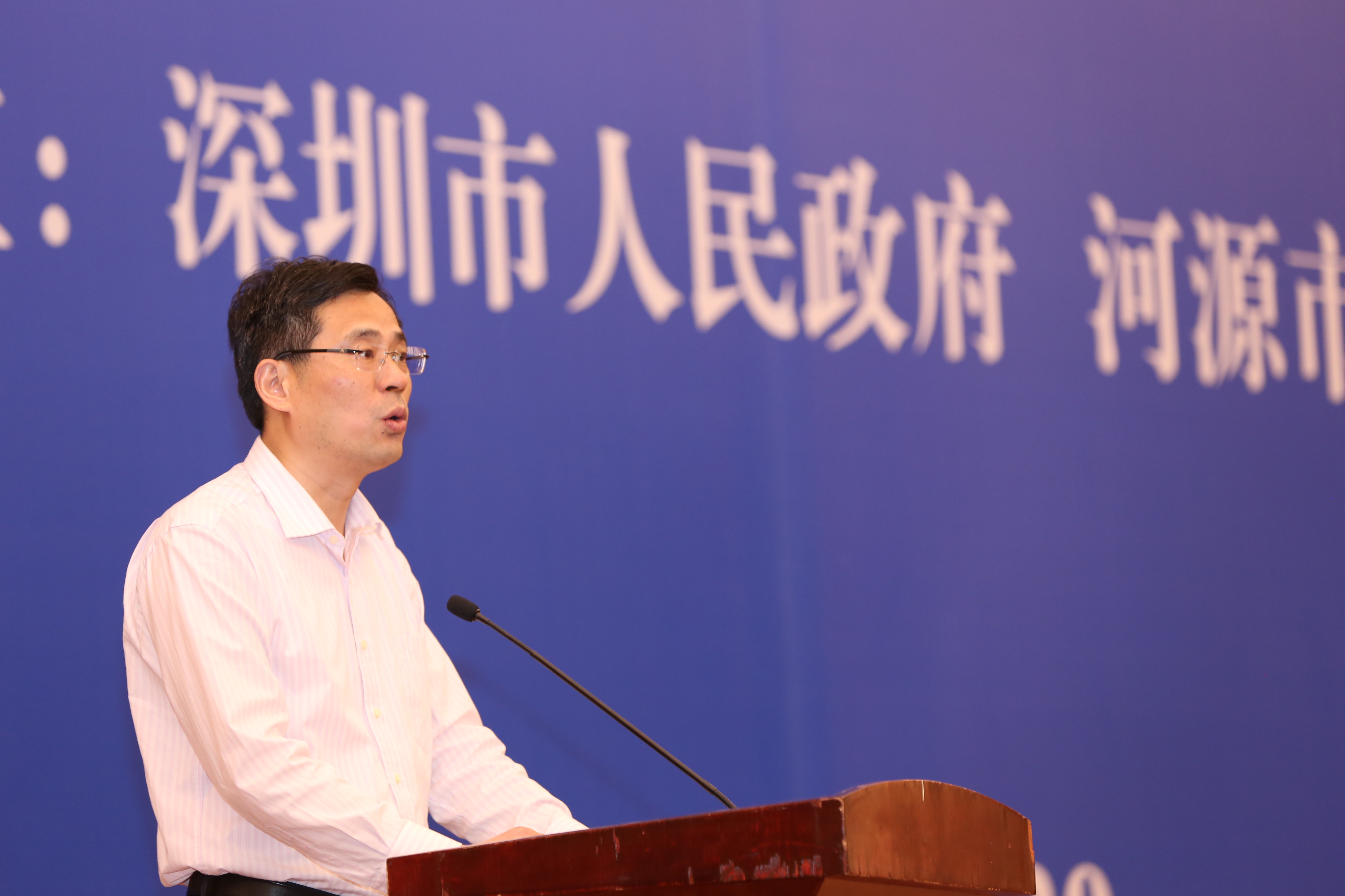 为河源市委书记何忠友在“深圳—河源对口帮扶招商推介会”上致辞。
