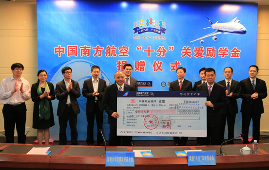 “南航作为央企以及国内最大的航空公司,一直积极履行企业社会责任,希望南航‘十分’关爱励学金能对受助学生的成长成才有所帮助,同时,南航也将与暨南大学共同开展本科生创新大赛、侨生汉语大赛、博士生攀登计划等学生课余活动比赛,丰富校园文化,开拓学生视野。”徐杰波副总经理表示。南航作为国家三大骨干航空运输企业之一,近年来发展迅速,多项指标在全行业领先。目前,南航是全球第一家同时运营波音B787和空客A380的航空公司,拥有飞机500余架。2013年,南航旅客运输量超过9000万人次,位列亚洲第一、全球前五,连续35年居国内各航空公司之首。截止2013年底,南航已连续安全飞行超过1100万小时,安全运输旅客累计7亿人次,安全管理水平在国内、国际均处于领先地位。