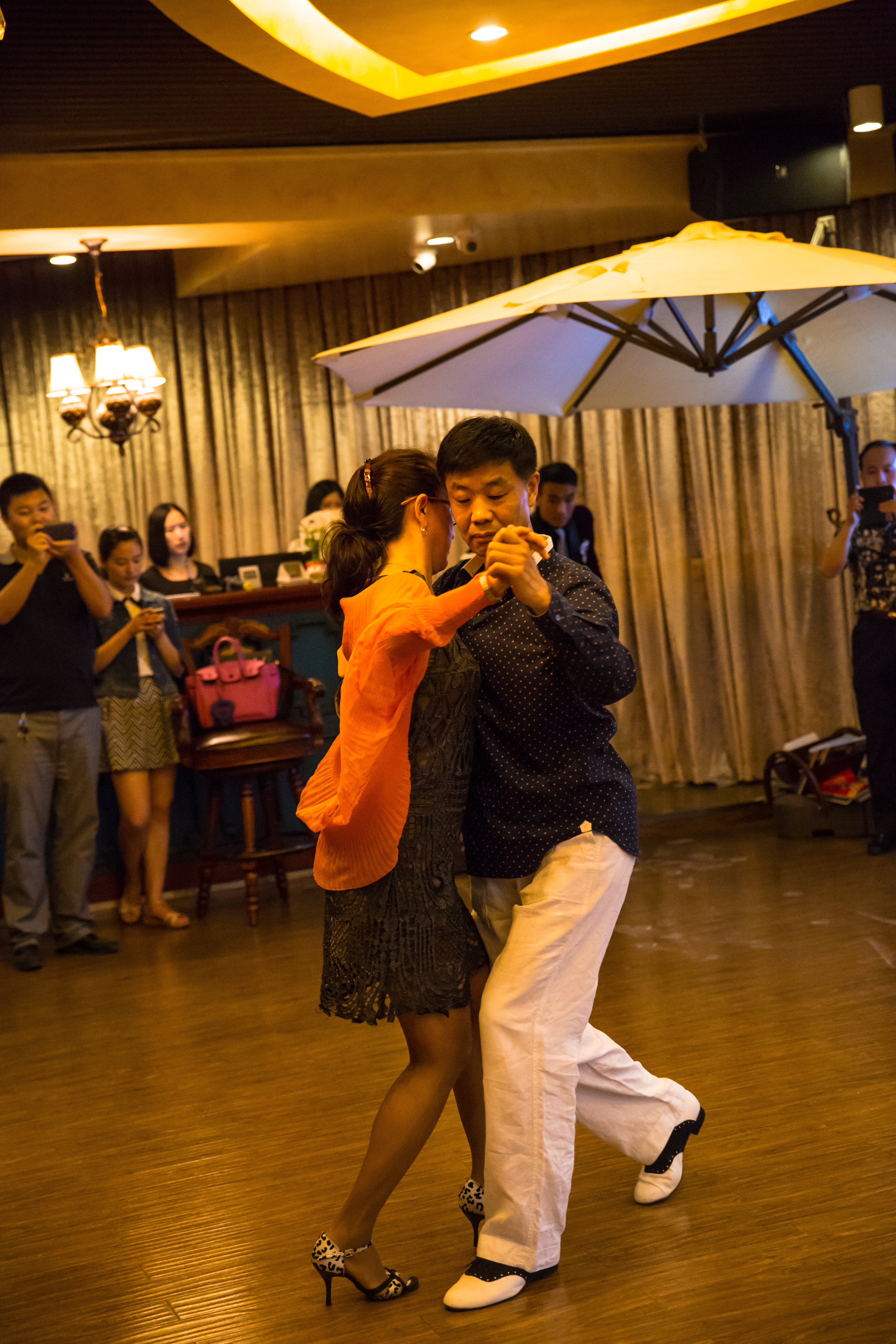郑州探戈帮的创始人闫义雄先生与妻子姚鸿女士为舞会带来了第一支探戈舞(赵昕摄)