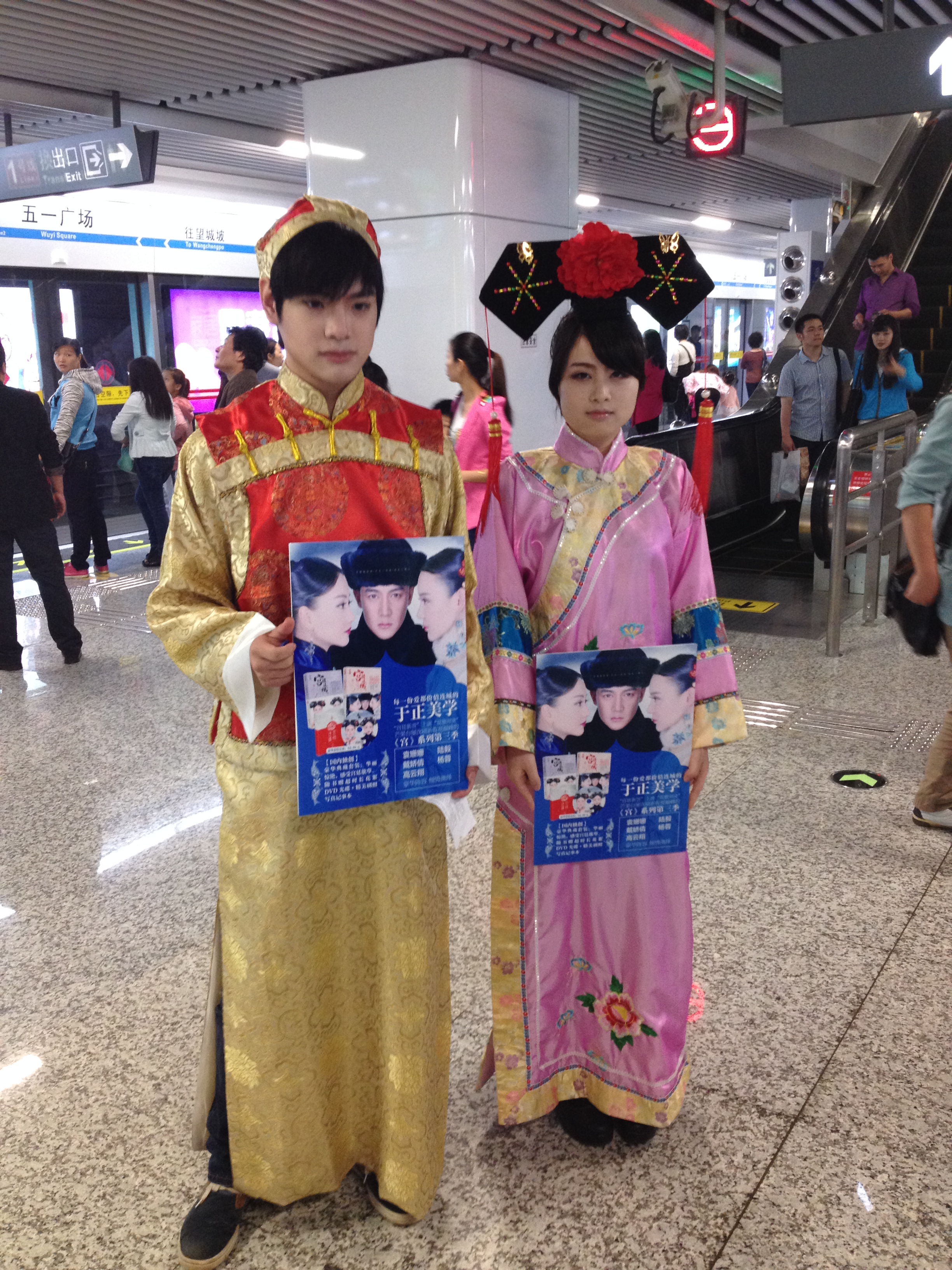【香港商报讯】近日,电视剧《宫锁连城》中人物“宋连城”和“富察恒泰”从清朝穿越回来,出现长沙五一广场地铁口,引得无数路人围观。
