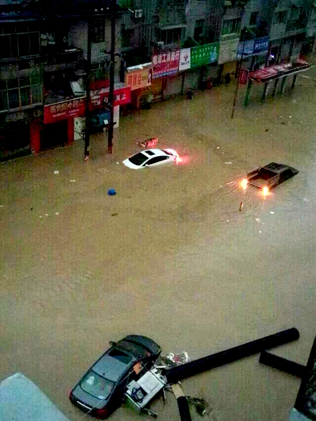 石阡县城汽车淹没水中----网友提供