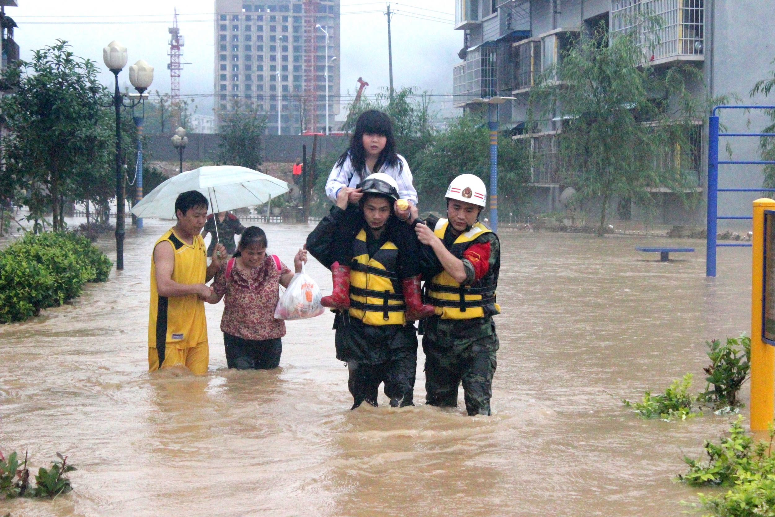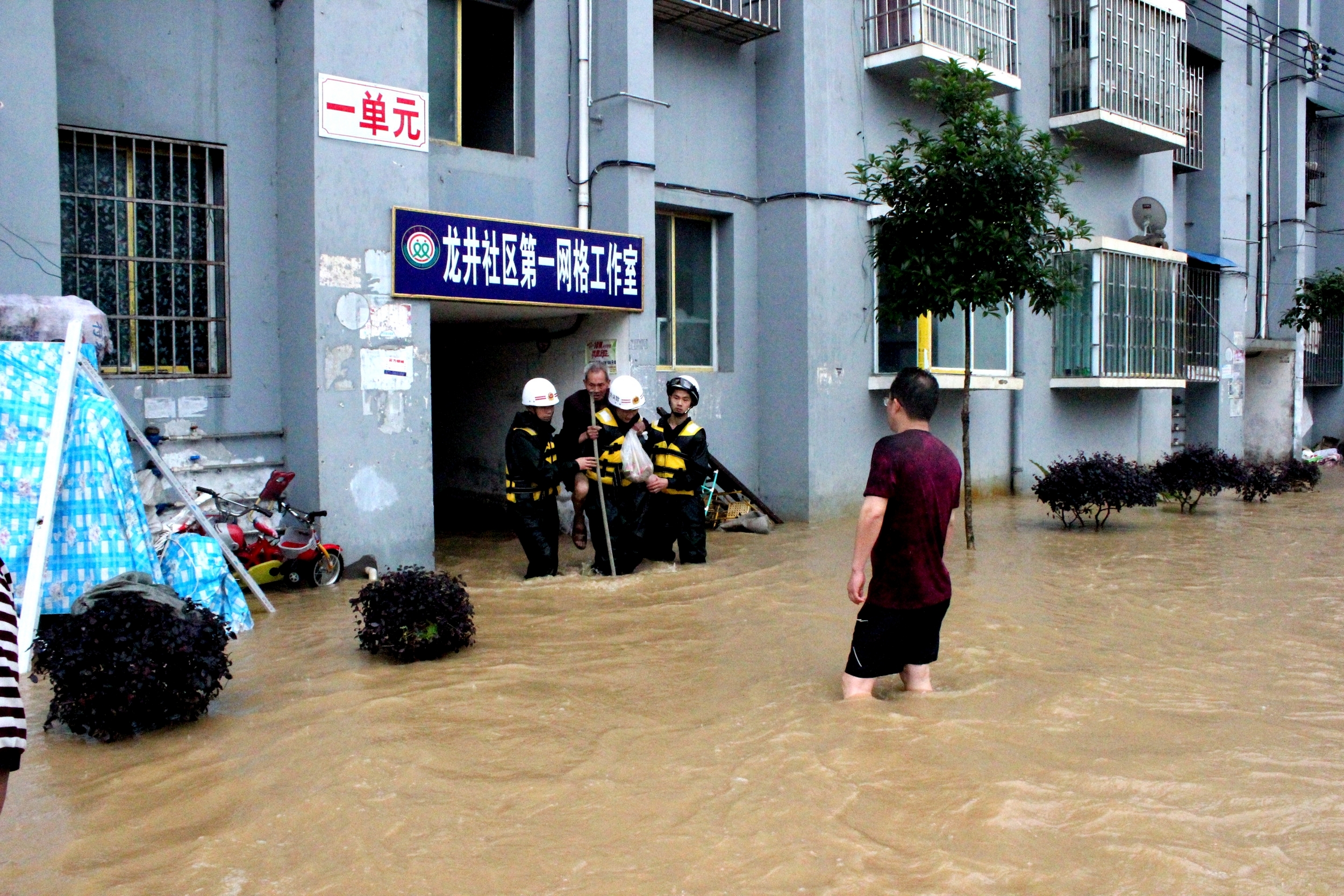 在江口县双江镇和甘家堡,450余名群众被困洪水之中,当地消防官兵紧急出动,成功将群众安全转移。